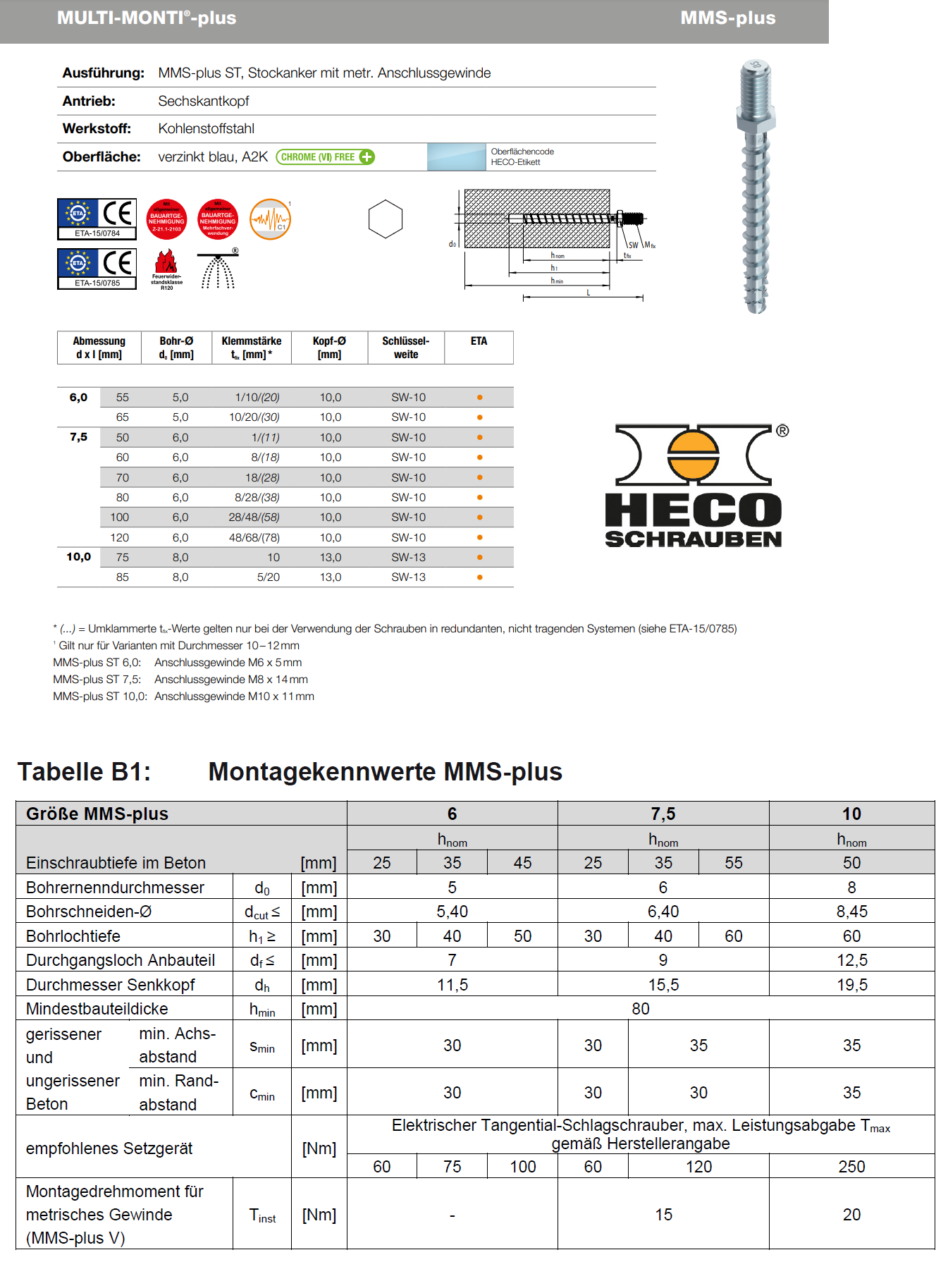 Multi-Monti Stockanker mit metr. Anschlussgewinde, MMS-plus ST Stahl verzinkt 6x65 K:10/20