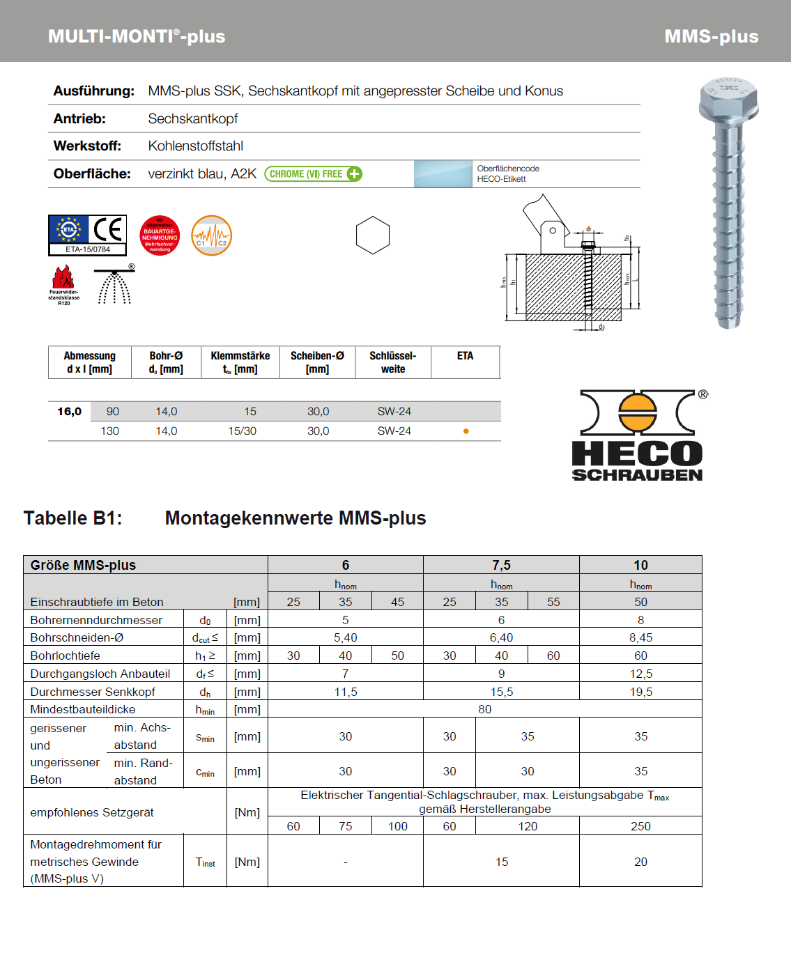 Multi-Monti Sechskant mit angepr. Scheibe u. Konus, MMS-plus-SSK Stahl verzinkt 16x90 K:15
