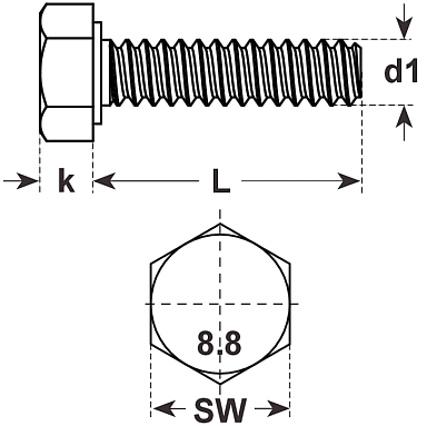 Sechskantschrauben ohne Schaft, DIN933 ISO4017 8.8 blank M24x240/240