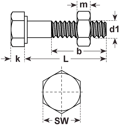 Maschinenschrauben mit Muttern, DIN601 ISO4016 3.6-4.6 verzinkt M24x200