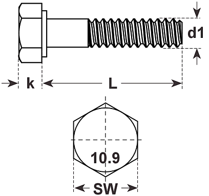 Sechskantschrauben mit Schaft, DIN931 ISO4014 10.9 verzinkt M12x130/36