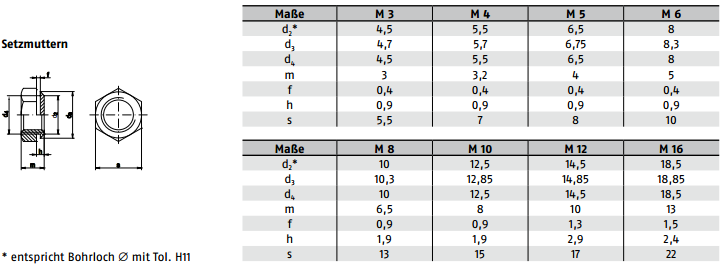 Sechskantsetzmuttern einsatzgehärtet, DIN88106 Stahl verzinkt M5x0,9