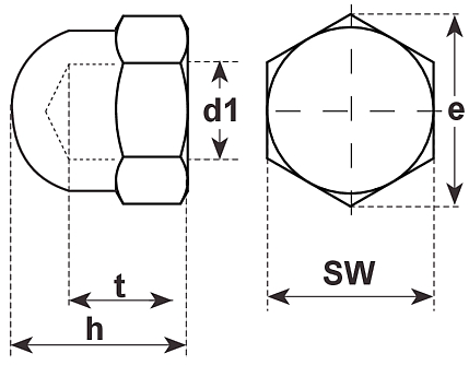 Hutmuttern hohe Form, DIN1587 Messing verchromt M5