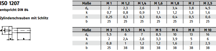 Zylinderschrauben mit Schlitz, DIN84A ISO1207 Messing blank M4x40