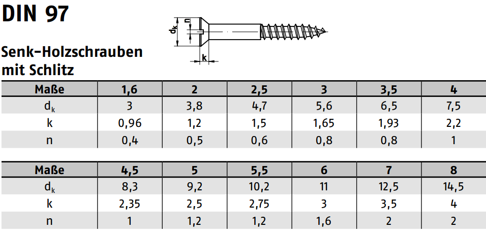 Senkholzschrauben mit Schlitz, DIN97 Messing blank 4x40