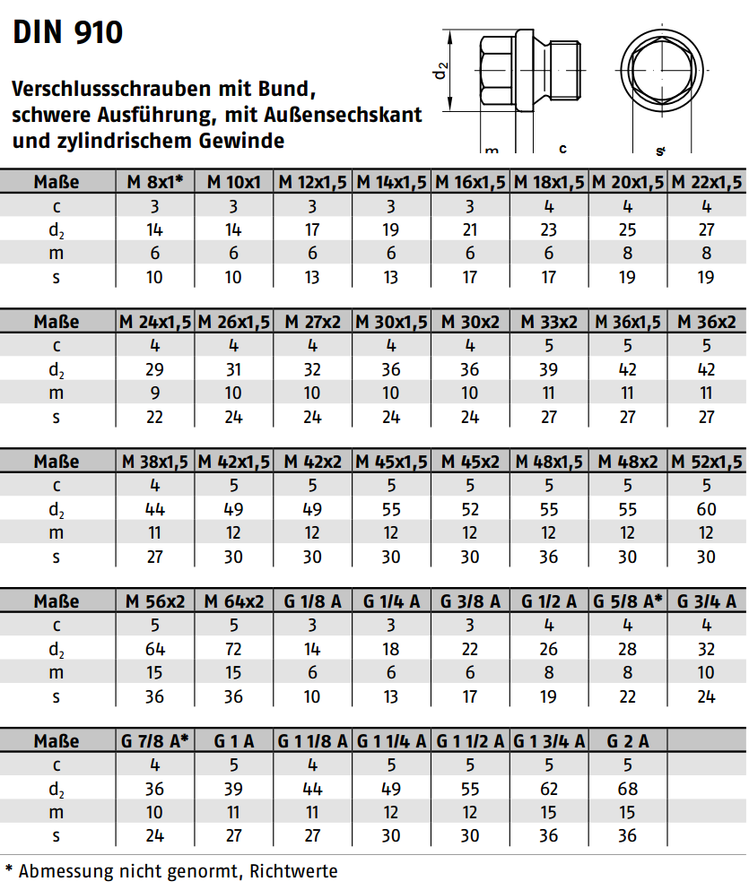 Verschlussschrauben mit Bund und Aussen6kt., DIN910 A4 rostfrei G 3-4