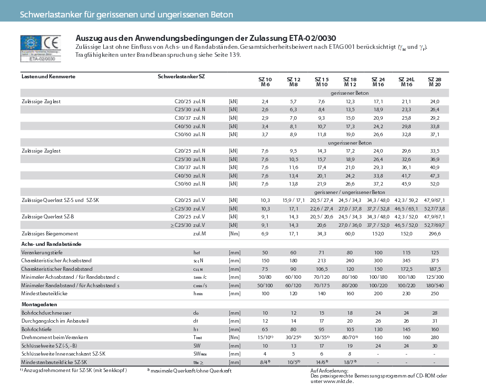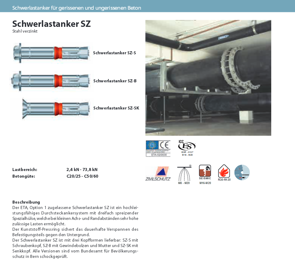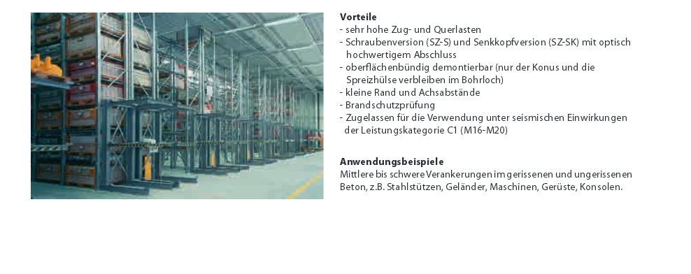 Schwerlastanker SZ-B f. Zug & Druckzonen, SZ-B 15-0 Stahl verzinkt M10x96 K:0