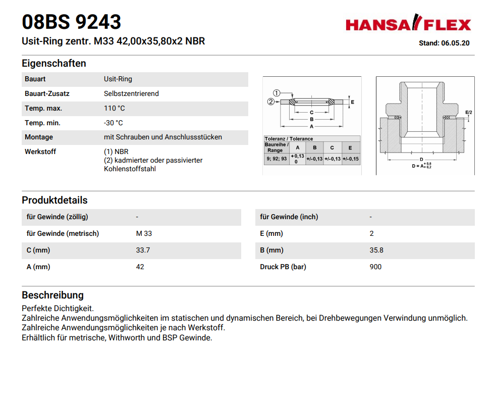 Schraubensicherungen selbstzentrierend, NBR/Stahl vz. M33/33,7x42,0x2,0