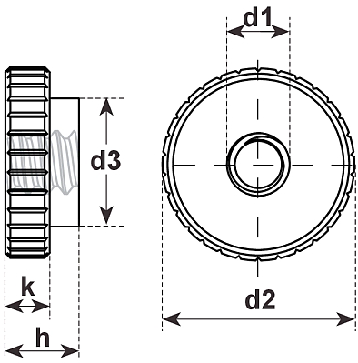 Rändelmuttern flache Form, DIN467 Polyamid M6