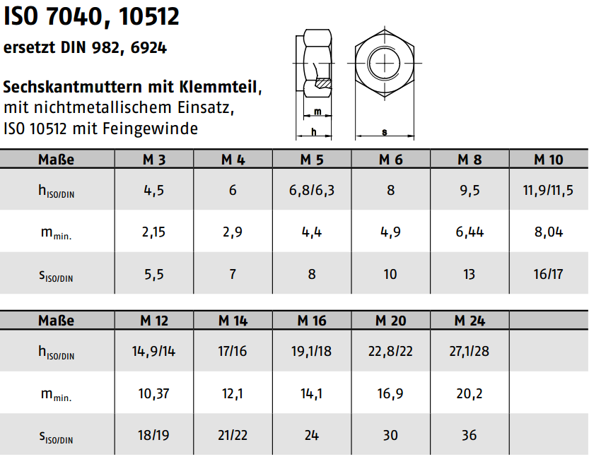 Sicherungsmuttern hohe Form mit Klemmteil, DIN982 ISO7040 10 verzinkt M10