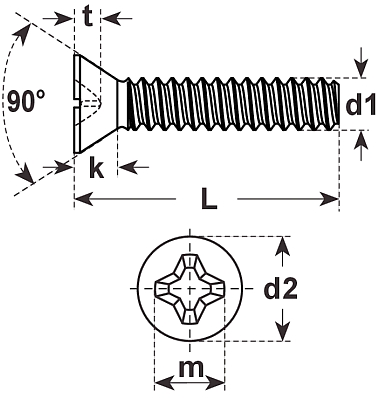 Senkschrauben 90°mit Kreuz H, DIN965A-H~ISO7046 A2 rostfrei M4x80/80