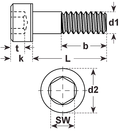 Zylinderschrauben mit In6kt. mit Schaft, DIN912-MS ISO4762 10.9 verzinkt M5x55/22