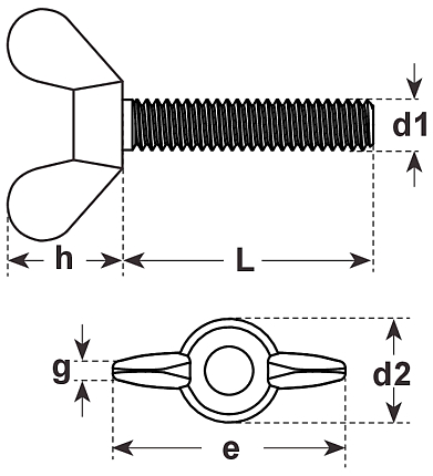 Flügelschrauben, DIN316 Messing blank M6x16