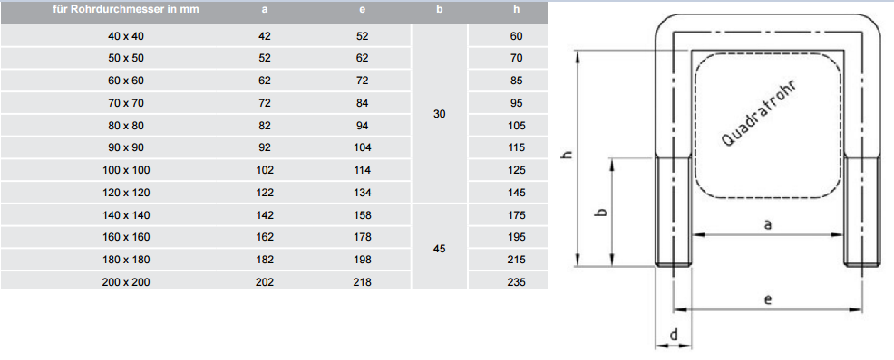 Quadratrohrbügel ohne Muttern, A4 rostfrei M12 120x120