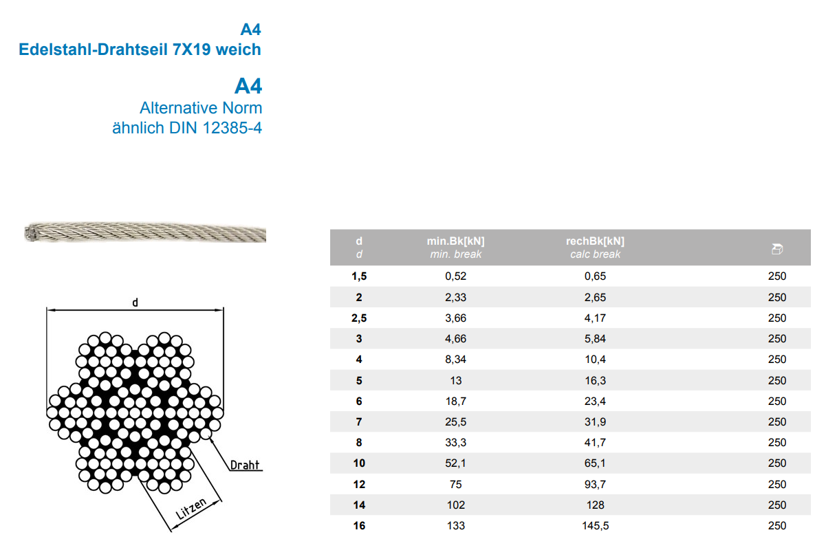 Edelstahl-Drahtseil 7x19 weich, A4 rostfrei 10,0