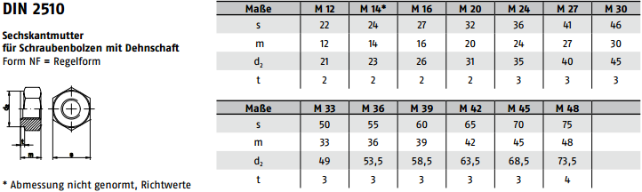 Sechskantmuttern zu Schraubenbolzen, DIN2510NF 24 CrMo5 blank M33