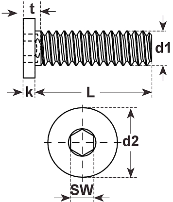 Zylinderschr. mit extrem flachem Kopf In6kt., 10.9 blank M6x6