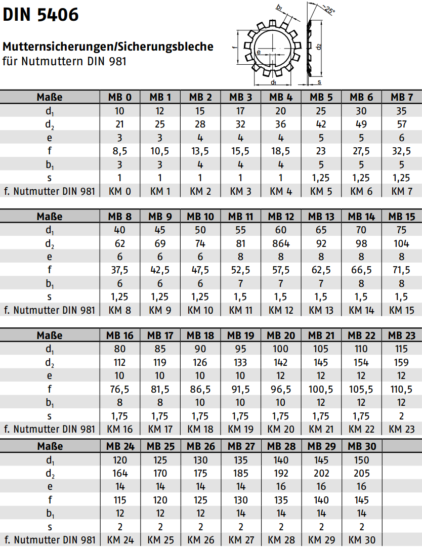 Sicherungsbleche für Nutmuttern DIN981, DIN5406 Stahl verzinkt MB8