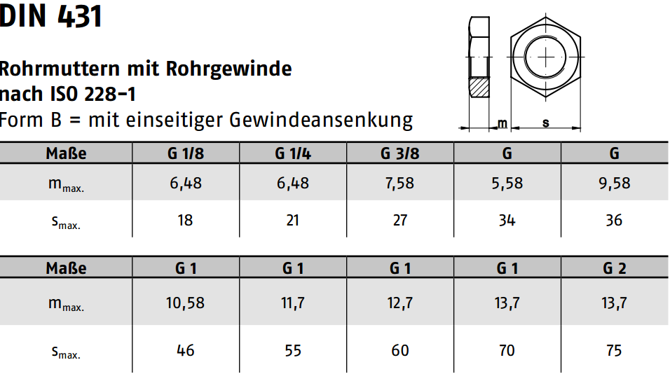 Sechskantrohrmuttern 0,5d Rohr-Gas, DIN431 A4 rostfrei R1-8
