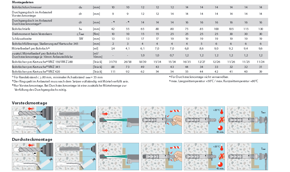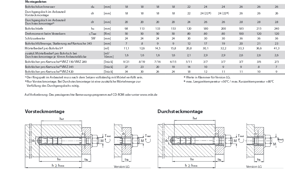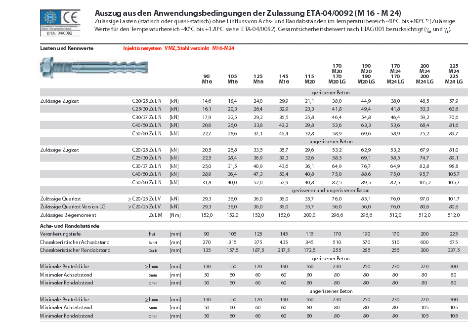 MKT Ankerstangen für gerissenen Beton, VMZ-A Stahl verzinkt M10x95 K:20