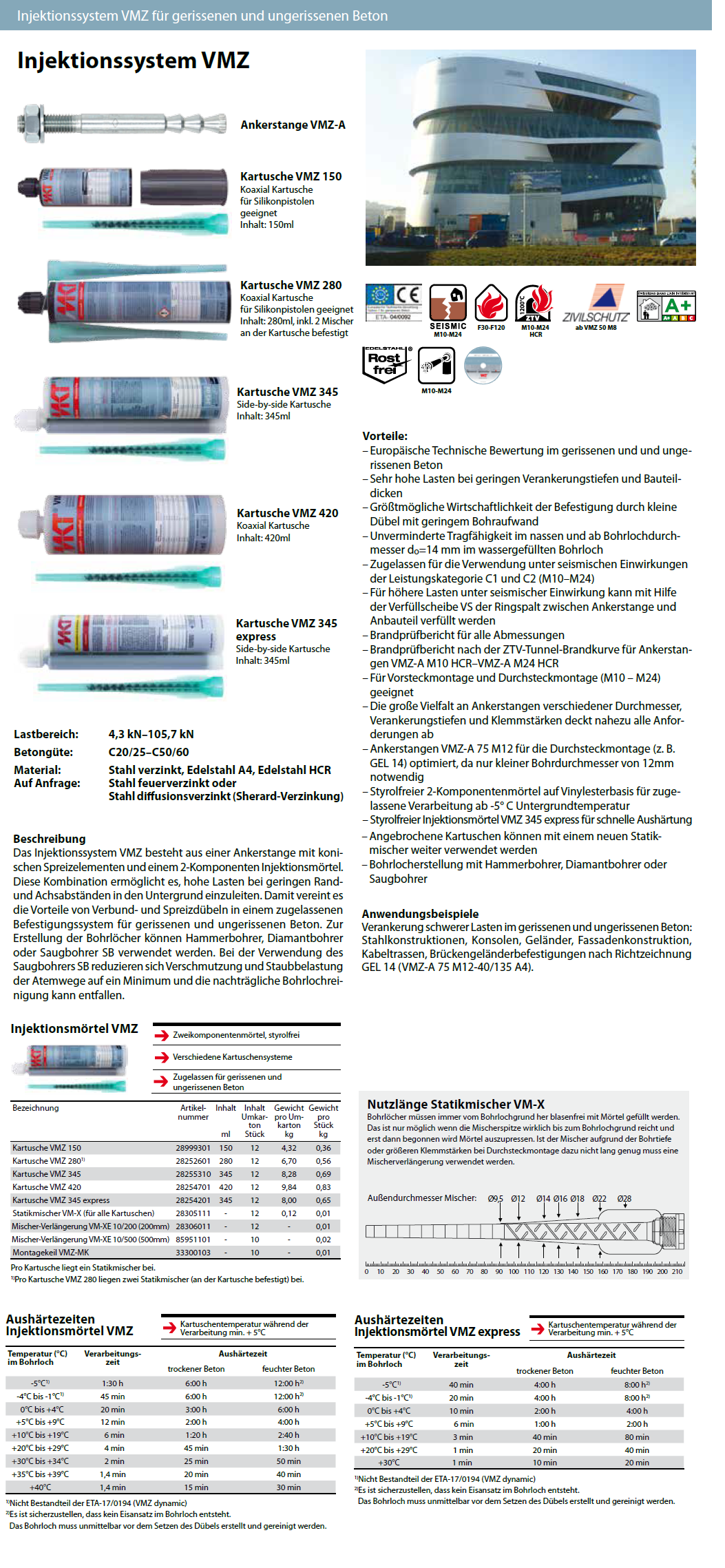MKT Injektionsmörtel Kartusche, VMZ345 styrolfrei 345ml