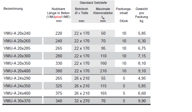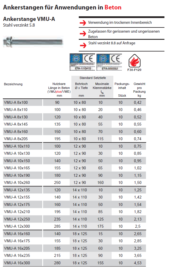 MKT Ankerstangen komplett, VMU-A 5.8 verzinkt M8x130 K:40