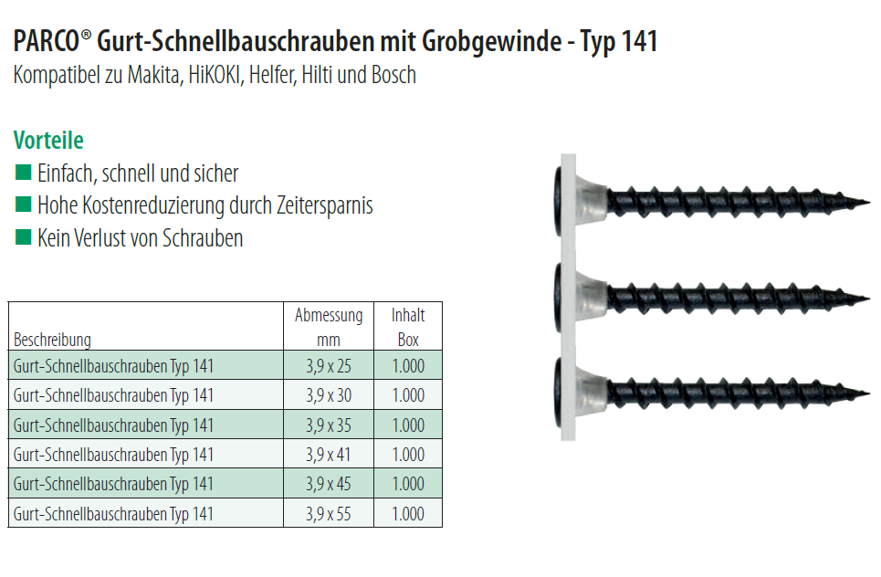 PARCO® Gurt-Schnellbauschrauben m. Feingewinde, Typ 140 Stahl phosphatiert 3,9x25
