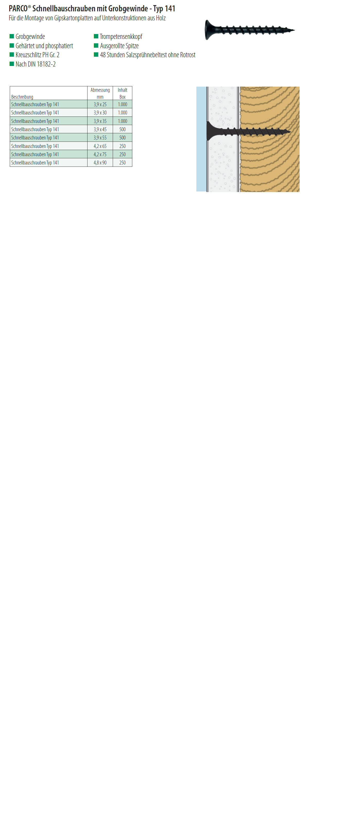 PARCO® Schnellbauschrauben m. Grobgewinde, Typ 141 Stahl phosphatiert 4,8x90