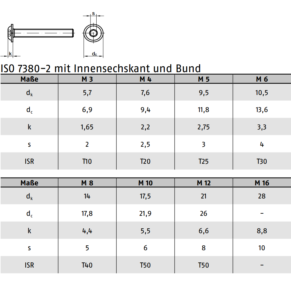 Linsenschrauben mit TX und Flansch, ISO7380-2 A2 rostfrei M6x45