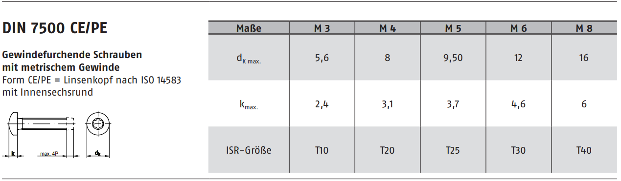 Gewindefurchende Linsenschrauben TX, DIN7500C-TX Stahl verzinkt M2,5x12