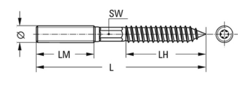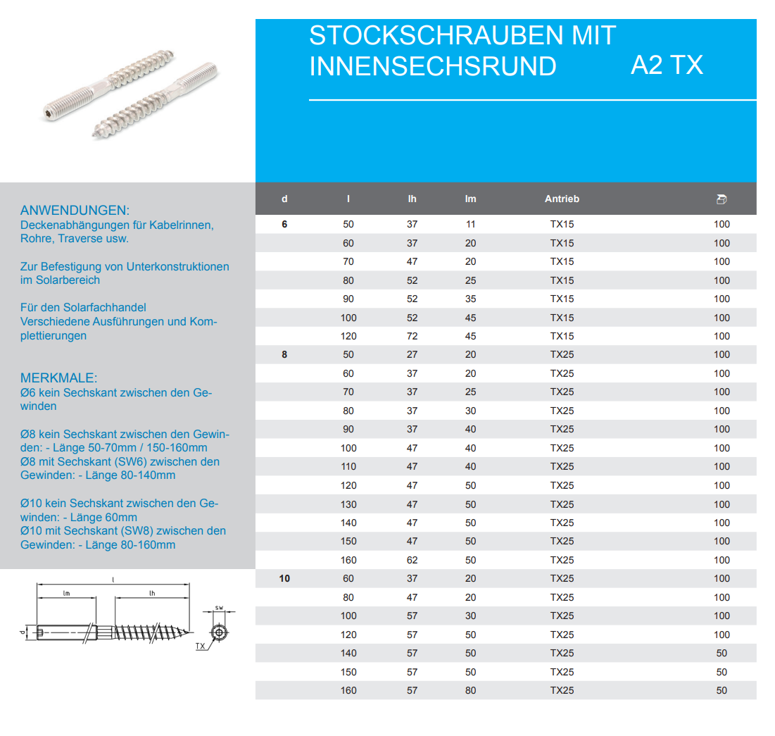Stockschrauben mit TX, A2 rostfrei/TX M10x60/20