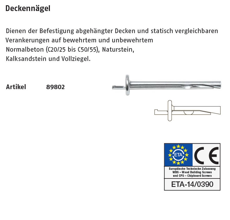 Deckennagel, Stahl verzinkt 6x40 K:5