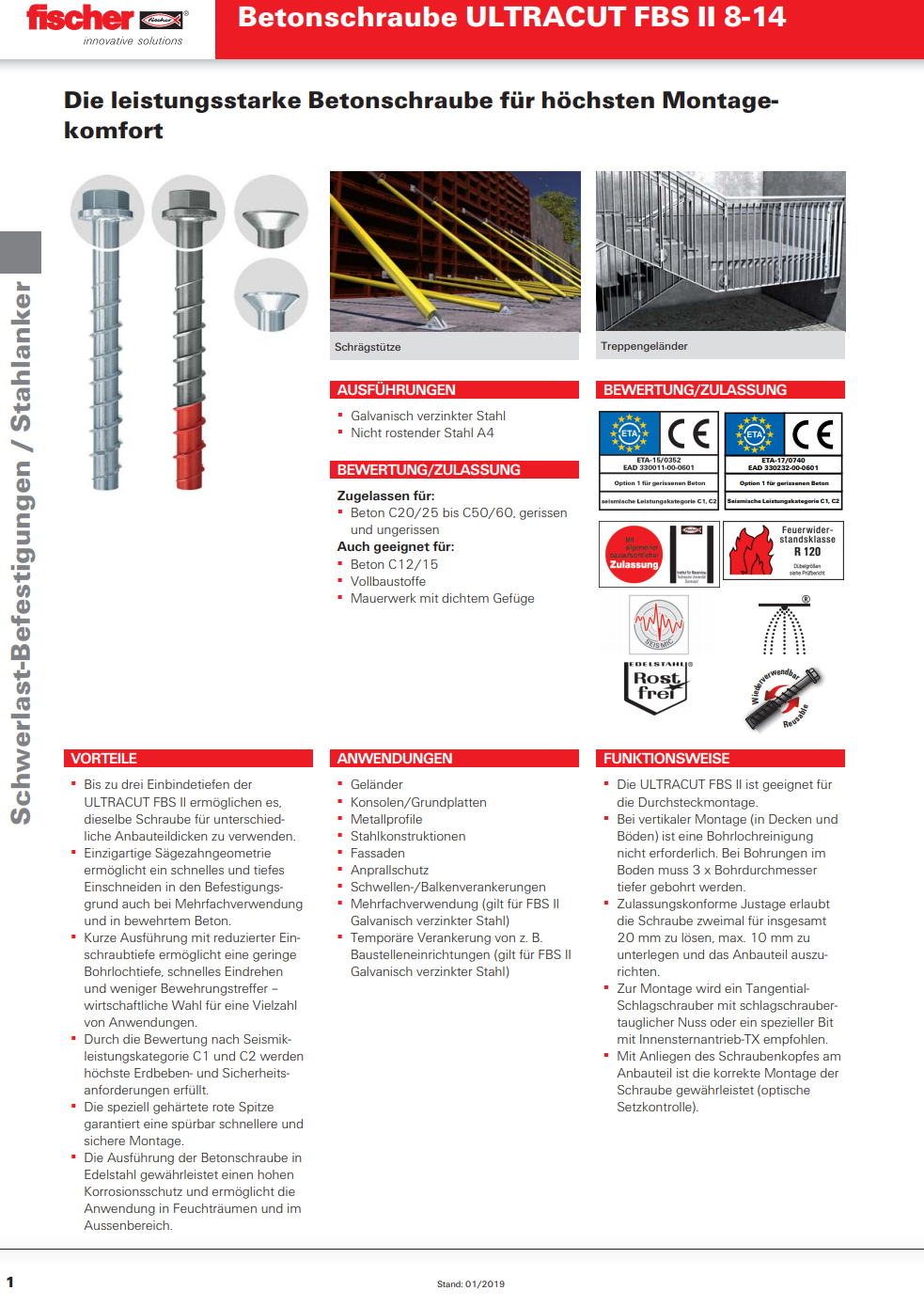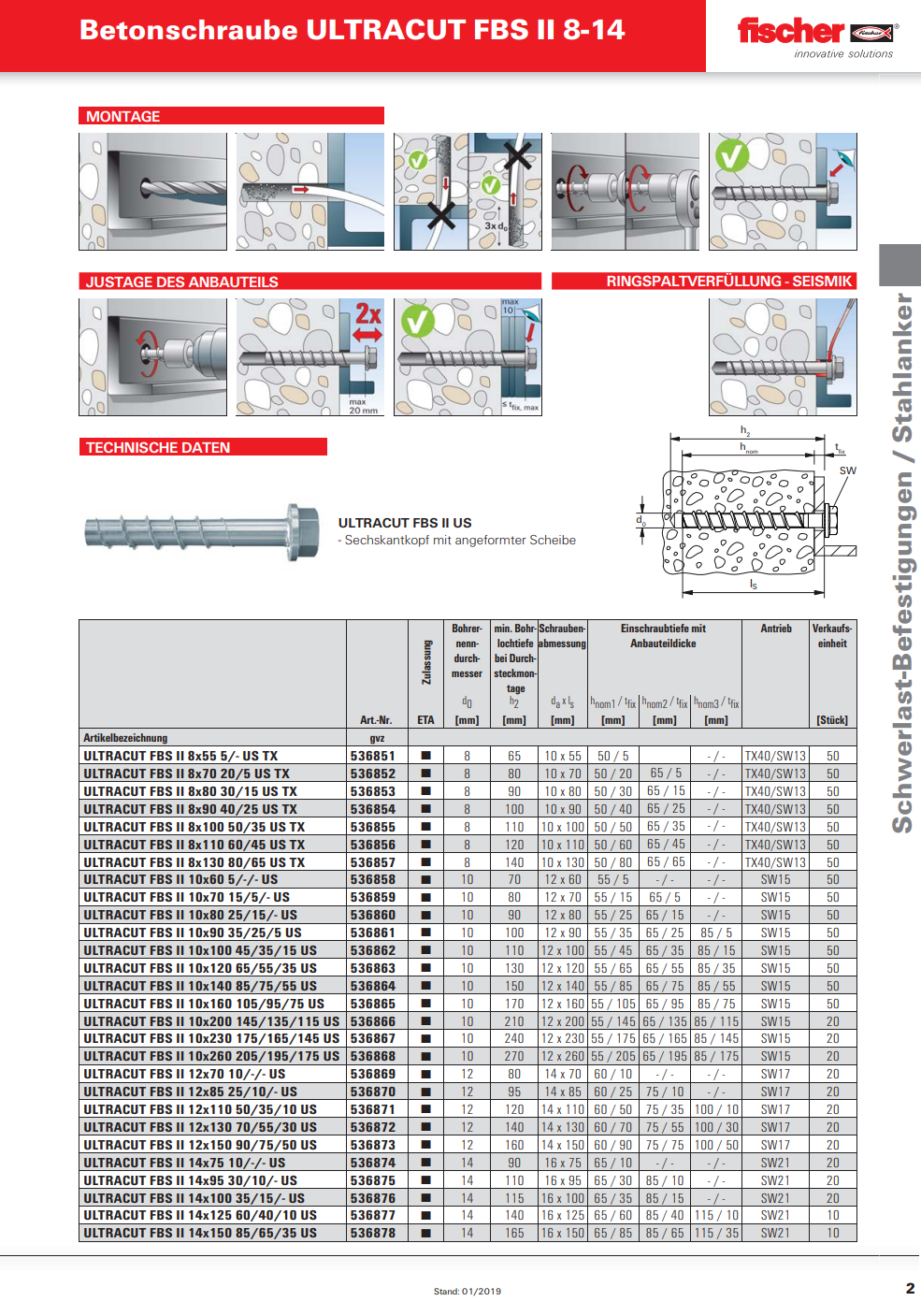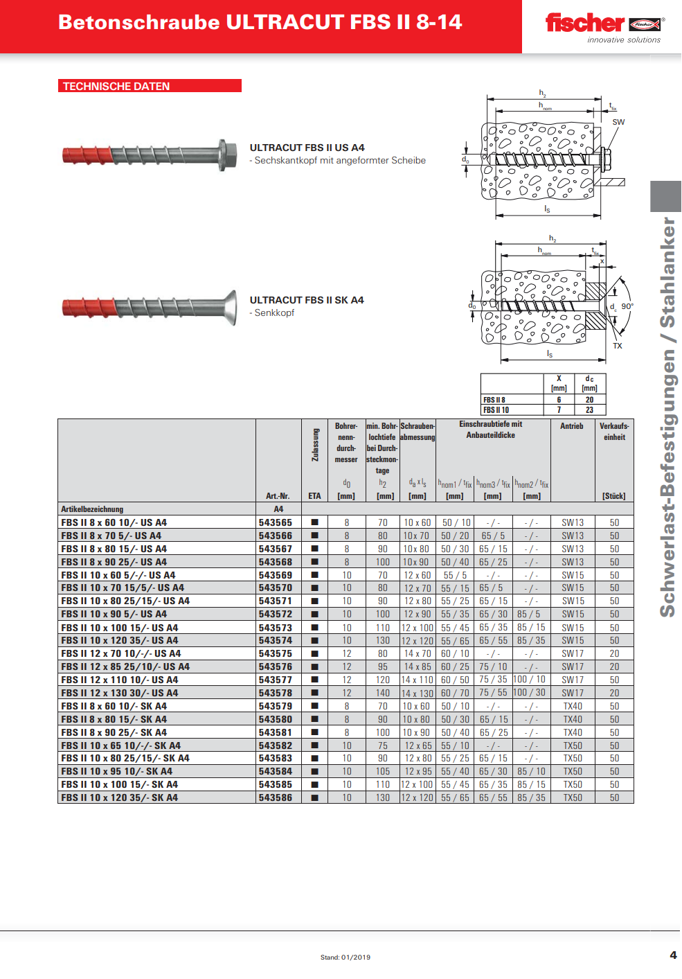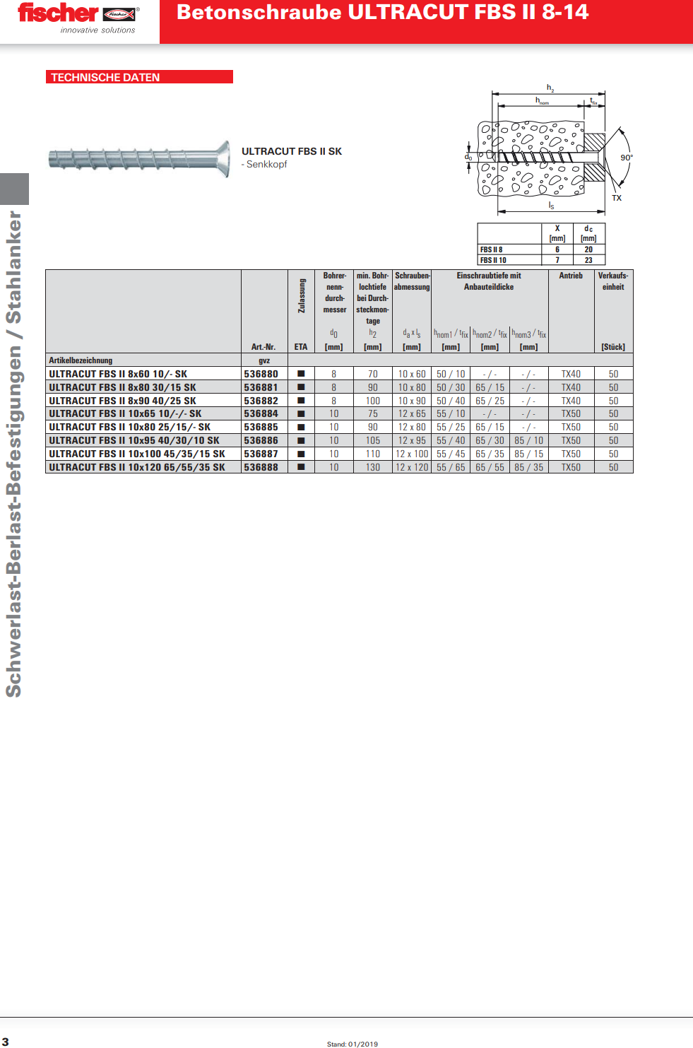 FISCHER Betonschrauben ULTRACUT Senk./TX, FBS II SK A4 rostfrei 8x80 K:30/15 SK