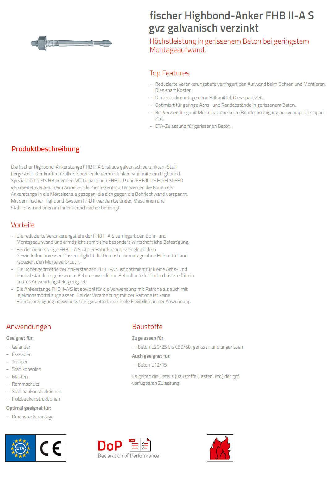 FISCHER Highbond-Anker Kurzversion, FHB II-A S Stahl verzinkt M20x270 K:50