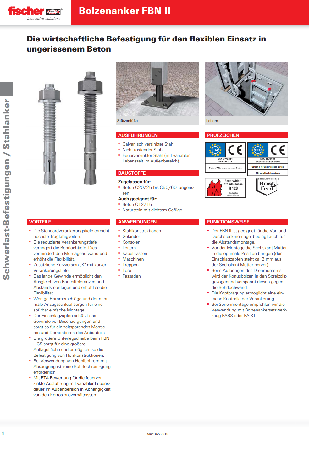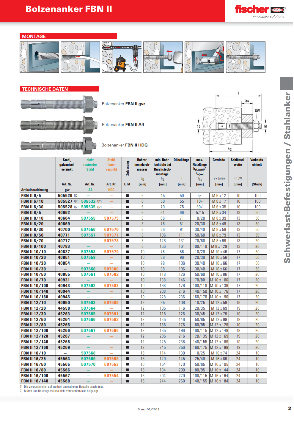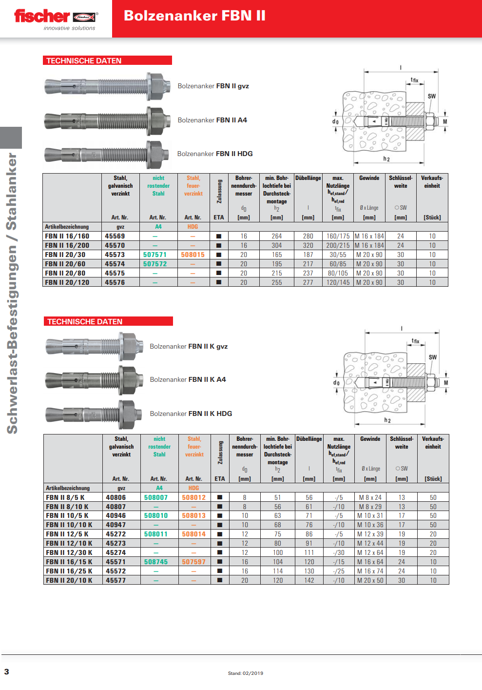 FISCHER Bolzenanker mit grosser Scheibe, FBN II-GS Stahl verzinkt M12x256 K:160
