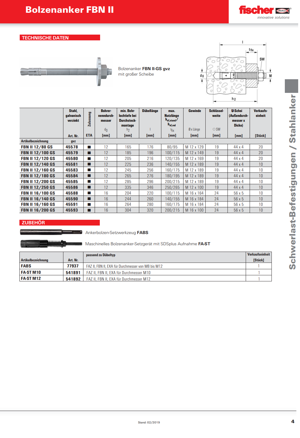 FISCHER Setzwerkezug, FA-ST M12 Stahl 205