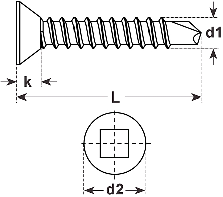 Senk-Bohrschrauben mit Quadrex Bit 1, DIN7504P-Q Stahl verzinkt 3,9x19 Bohrl:0,7-2,4