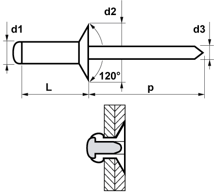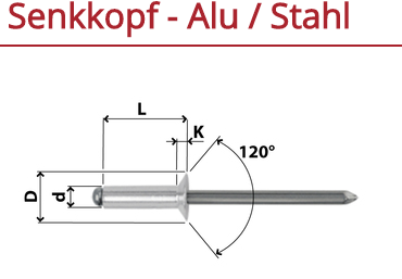 Blindnieten 120° Senkkopf, BN-SK-ST Aluminium-Stahl 5x10 K:4,5-6