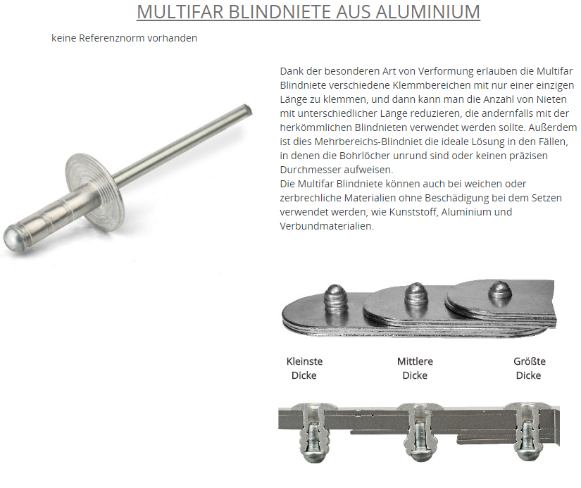 Blindnieten Grosskopf 16mm, Aluminium-Edelstahl 4,8x16 K:6,4-12,0