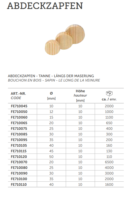 Abdeckzapfen längs der Masierung, Fichte 30x10