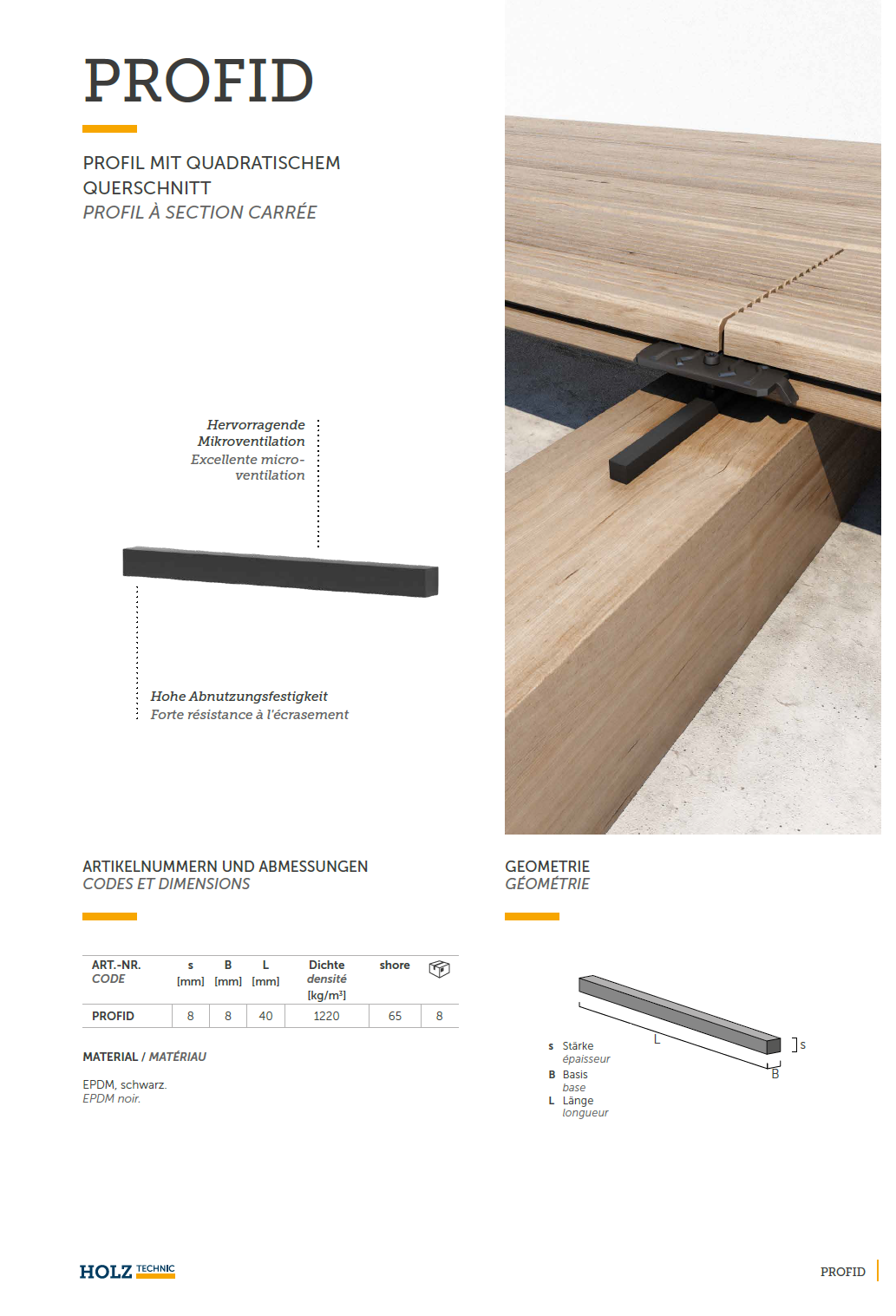 Abstandhalter mit quadratischem Querschnitt, EPDM schwarz 8x8x40