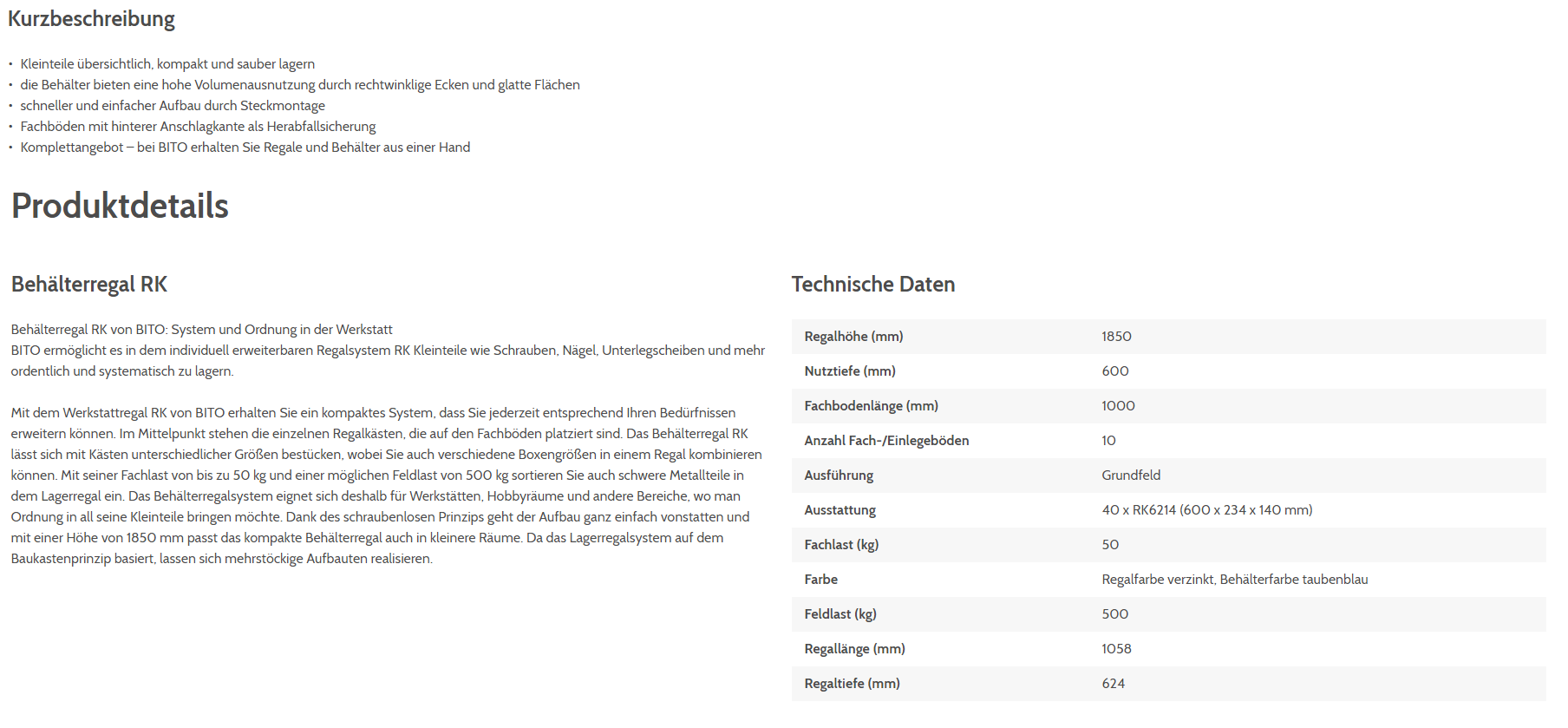 Behälterregal BITO inkl. 40 Regalkästen, Grundelement verzinkt 1850x1058x624