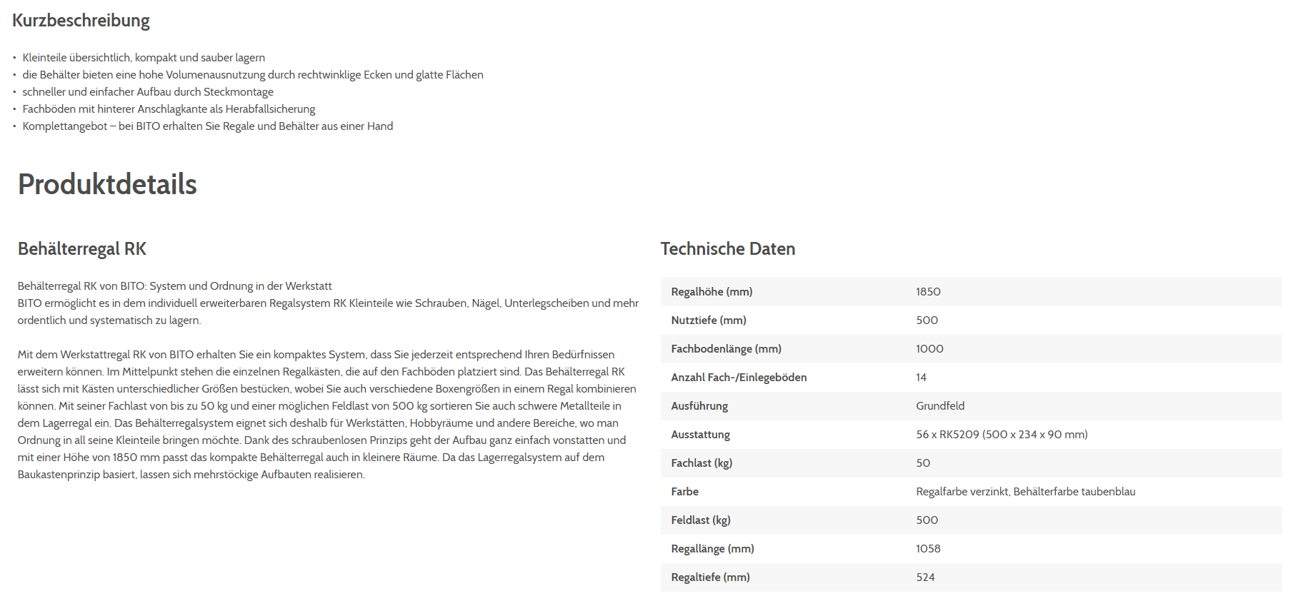 Behälterregal BITO inkl. 56 Regalkästen, Grundelement verzinkt 1850x1058x524