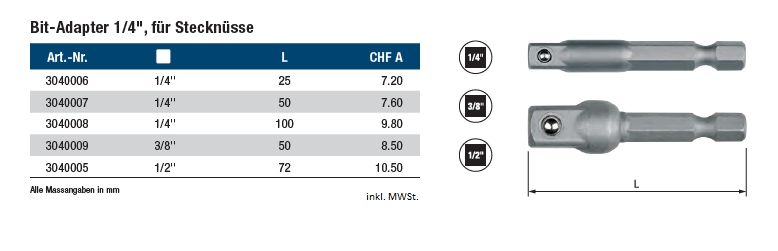 Bit-Adapter STARCH für Stecknüsse 3/8", 50mm 3/8"