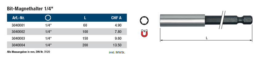 Bit-Magnethalter STARCH 1/4", 150mm 1/4"