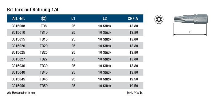Bit STARCH TX mit Bohrung 1/4", S2 Qualität, verchromt TB40x25 1/4"