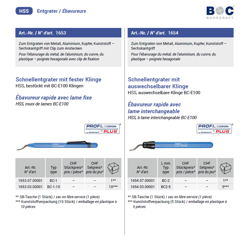 Bohrcraft Schnellentgrater Klinge auswechselbar, Typ BC-2 HSS