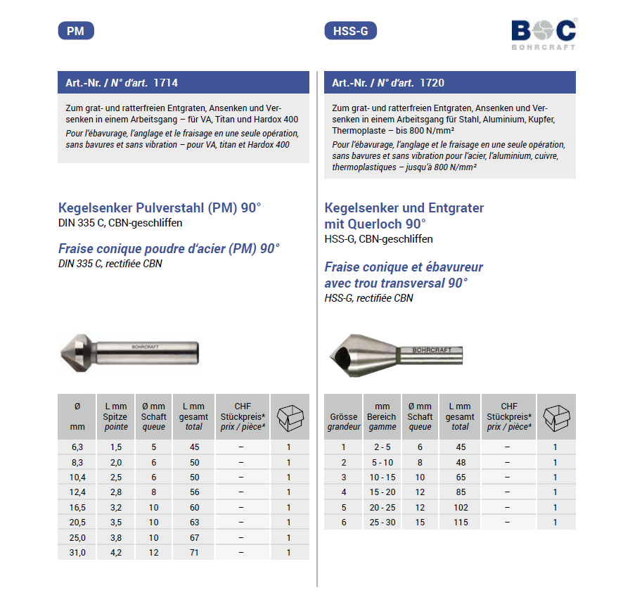Bohrkraft Kegelsenker Pulverstrahl PM 90°, DIN335/Form C CBN geschliffen 25,0x67