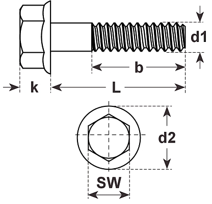 Sechskantschrauben mit Flansch, DIN6921 EN1665 A4 rostfrei M10x50