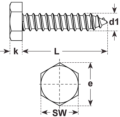 Sechskantblechschrauben, DIN7976C ISO1479 A2 rostfrei 5,5x32